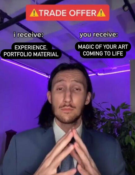 Shoot me an email at [email protected] with the subject line "Animation Collaboration."Please include:1. Your social media handles.